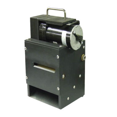 The tester is used inside a cold chamber, allowing samples and the fixture to be pre-conditioned at the test temperature. After soaking, the ambient temperature drive motor is attached, and samples are folded through knurled rollers. The propensity of materials to resist cracking or stiffness is then visually assessed.
