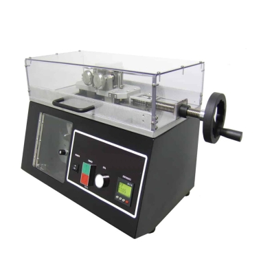 The Scott Crease Flex Tester is designed to evaluate the durability and finish of leather, fabric, and vinyl materials under repeated flexing. It specifically measures peeling, crazing, raveling, and general material degradation caused by roll flexing.